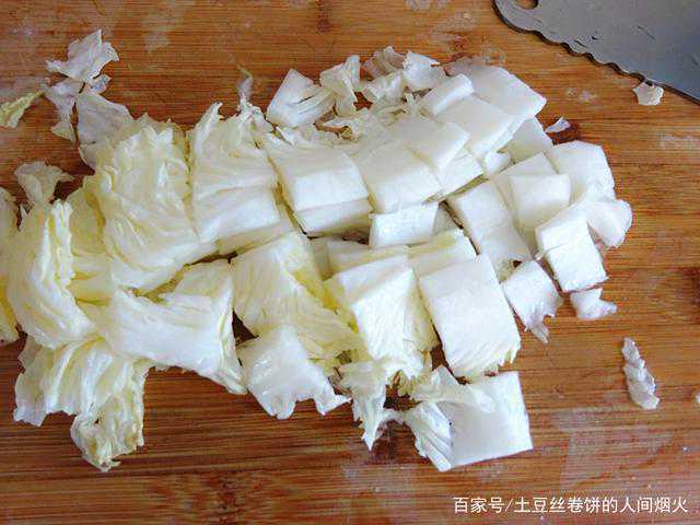 5、在把菜帮横切成2厘米宽左右的块。