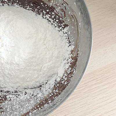 5、过筛加入低筋面粉、泡打粉翻拌均匀
