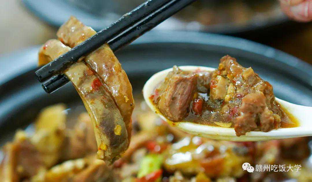 赣州的苍蝇馆子,大多都做得一手好鸭子,这家也不例外。猪肚烧鸭,我个人是它的忠实粉。辣度中等,肚子是用的肚尖,三层的那种,脆又弹,配上鸭子的鲜,整个都鲜掉眉毛。
