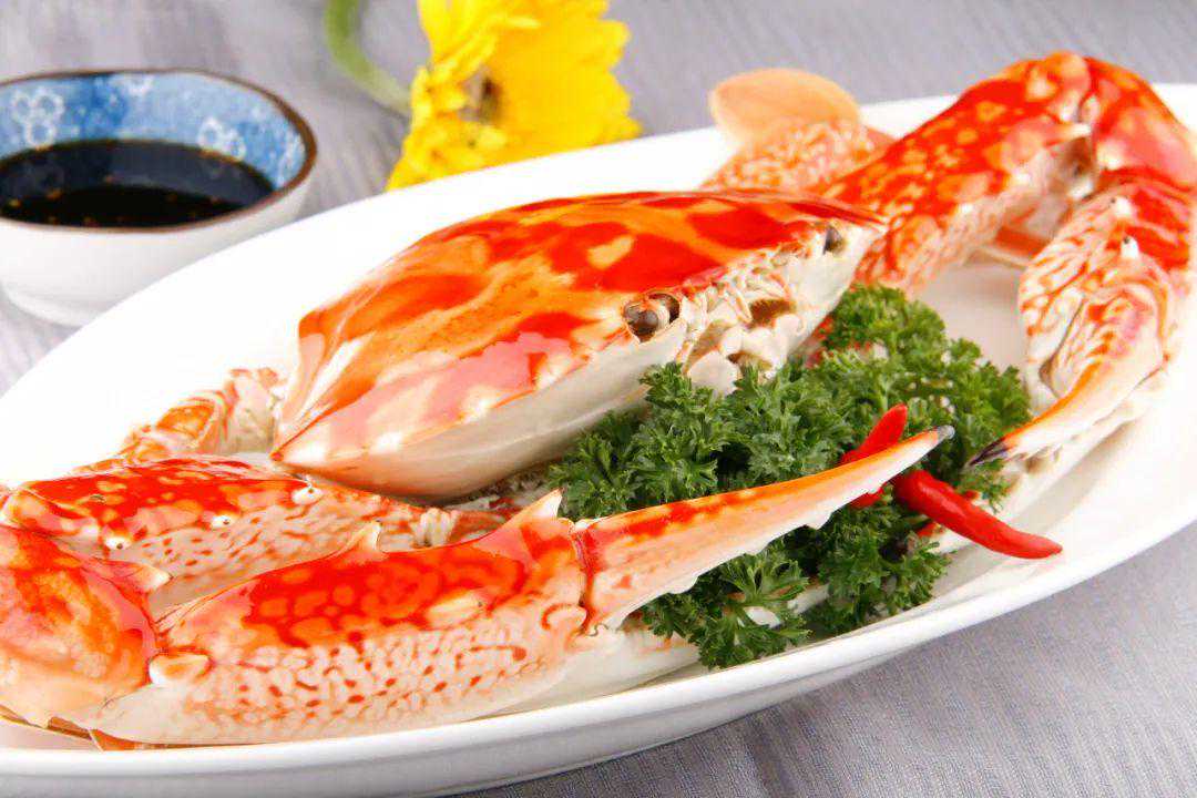 将新鲜的花蟹蒸熟后自然晾凉,等到要吃的时候放进冷冻层冻上30分钟。