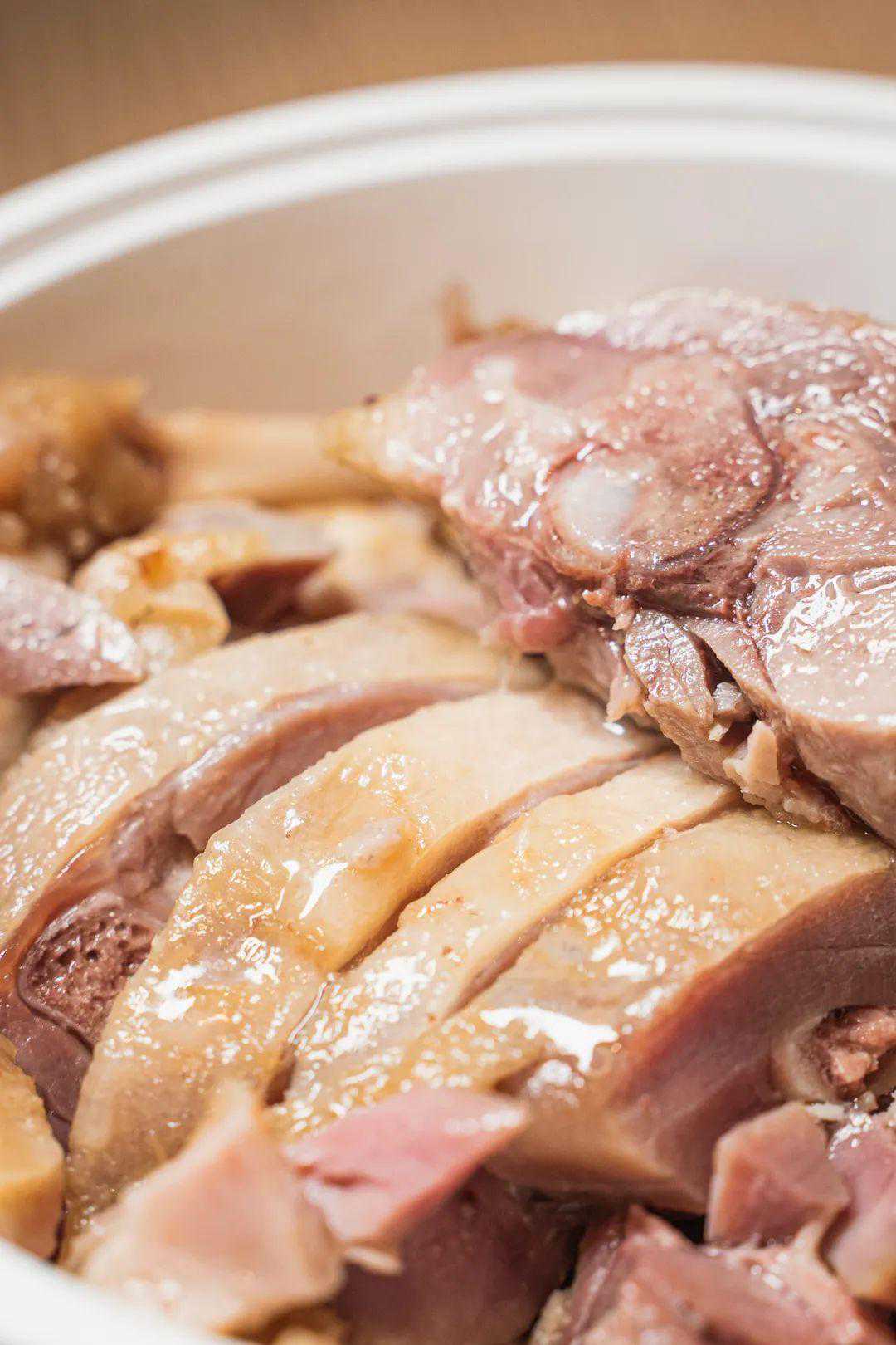 皮白柔嫩、肥而不腻、鲜美可口是盐水鸭的特点,经过处理的鸭肉变得十分紧致,入口细腻不干柴。盐水鸭的鸭皮是台台最爱,鸭皮没有肥腻感,爽脆弹牙还有老卤的油香,令人百吃不厌。
