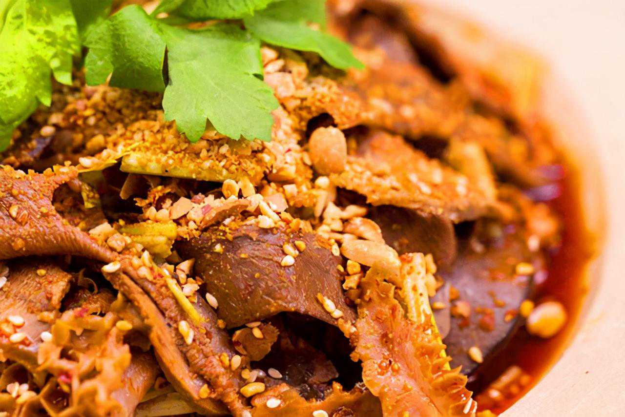 夫妻肺片是川菜中的经典,经过炖煮的下水和牛肉变得软软糯糯,用小料汁一拌,麻辣鲜香。