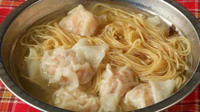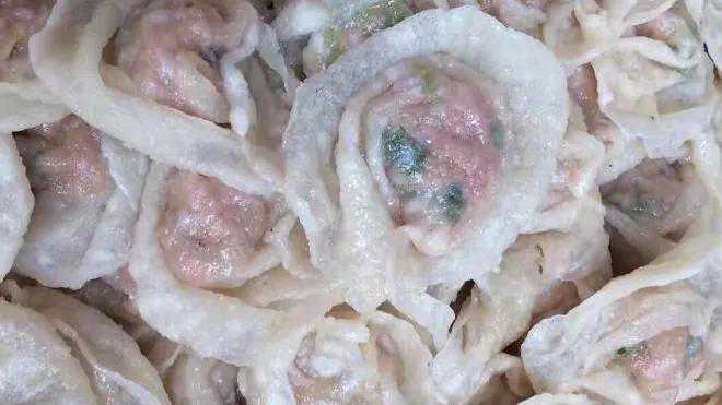 4.云吞皮包入馅,逐个做成云吞。