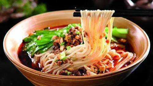 原料:龙须面300克,猪肉末150克,油菜心100克,熟白芝麻5克,盐、味精、白砂糖、酱油、干朝天椒、干二金荆辣椒、葱片、姜片、香葱花、草果、大料、桂皮、植物油各适量。