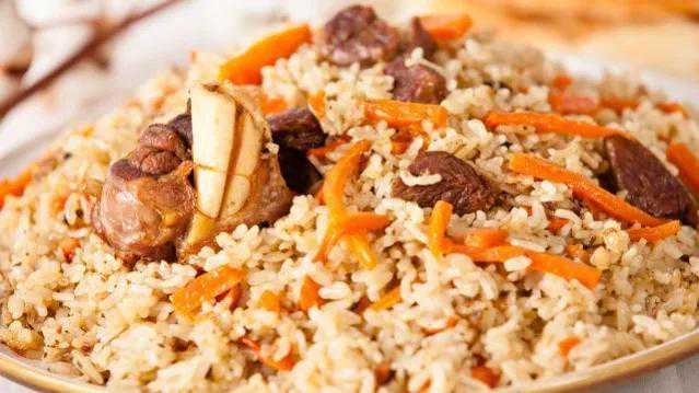 原料:大米350克,羊排200克,胡萝卜、葡萄干、盐、植物油各适量。