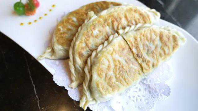 6.平底锅中放植物油烧热,放入面饼生坯,煎成金黄色即可。