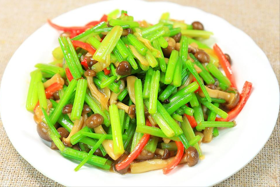 好了,一道非常简单的蟹味菇炒芹菜就做好了。