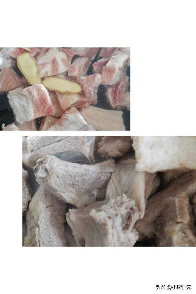 1.排骨焯水,捞出,温水洗净浮沫,沥干水分。