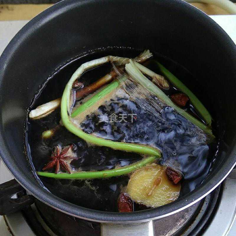 1.先来熬制复制酱油,有这个加了料熬出来的酱油,调面才好吃,生抽200克,姜两片,葱一颗,八角两个,白糖一勺,烧开转小火熬制30分钟就成复制酱油啦!夏天多做点天天可以吃凉面。