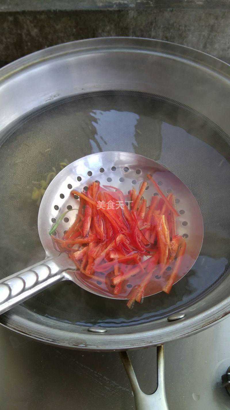 5.红椒丝同样是焯水断生过凉。