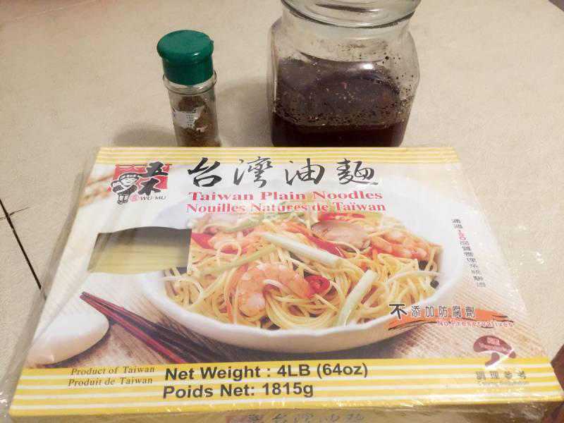 1.关键食材:台湾油面[a]、花椒面、熟油辣椒[b]。这三样在各种亚洲、中国超市都能找到,并且最不可替代。别的东西缺少或者替代,并不要紧;但是这三样换了,风味就打折了。