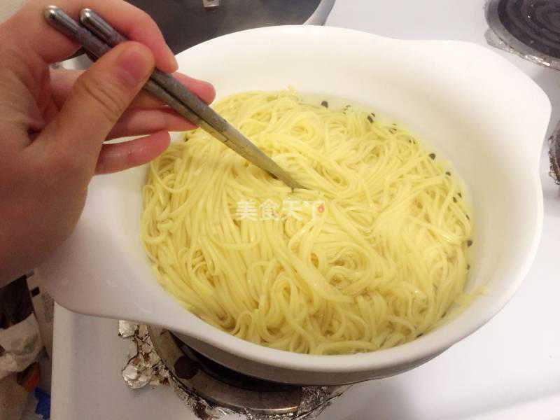 4、肠胃不好的人也可将煮好的面不过凉水,用少许食用油拌合,防止粘成团。
