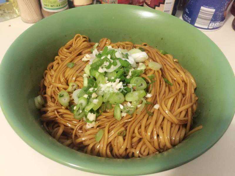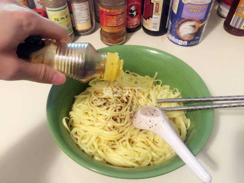 8.过凉控水后的面条放在碗里,加入适量的复制酱油,姜蒜油,调匀。