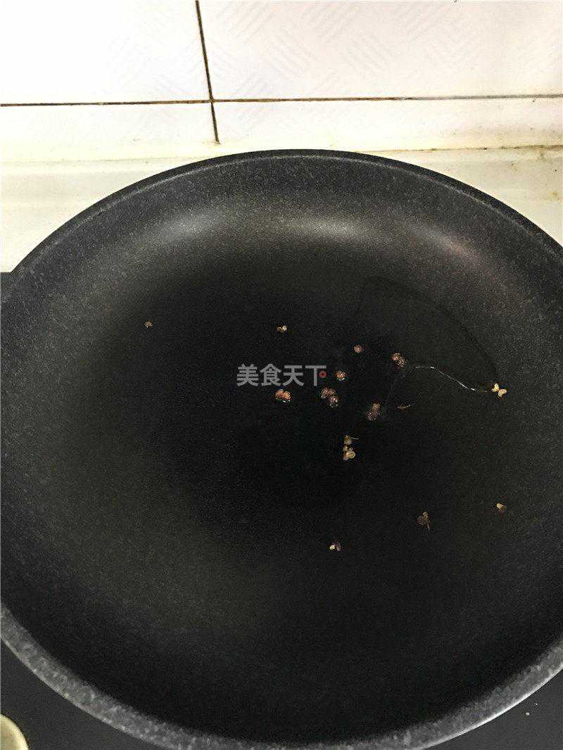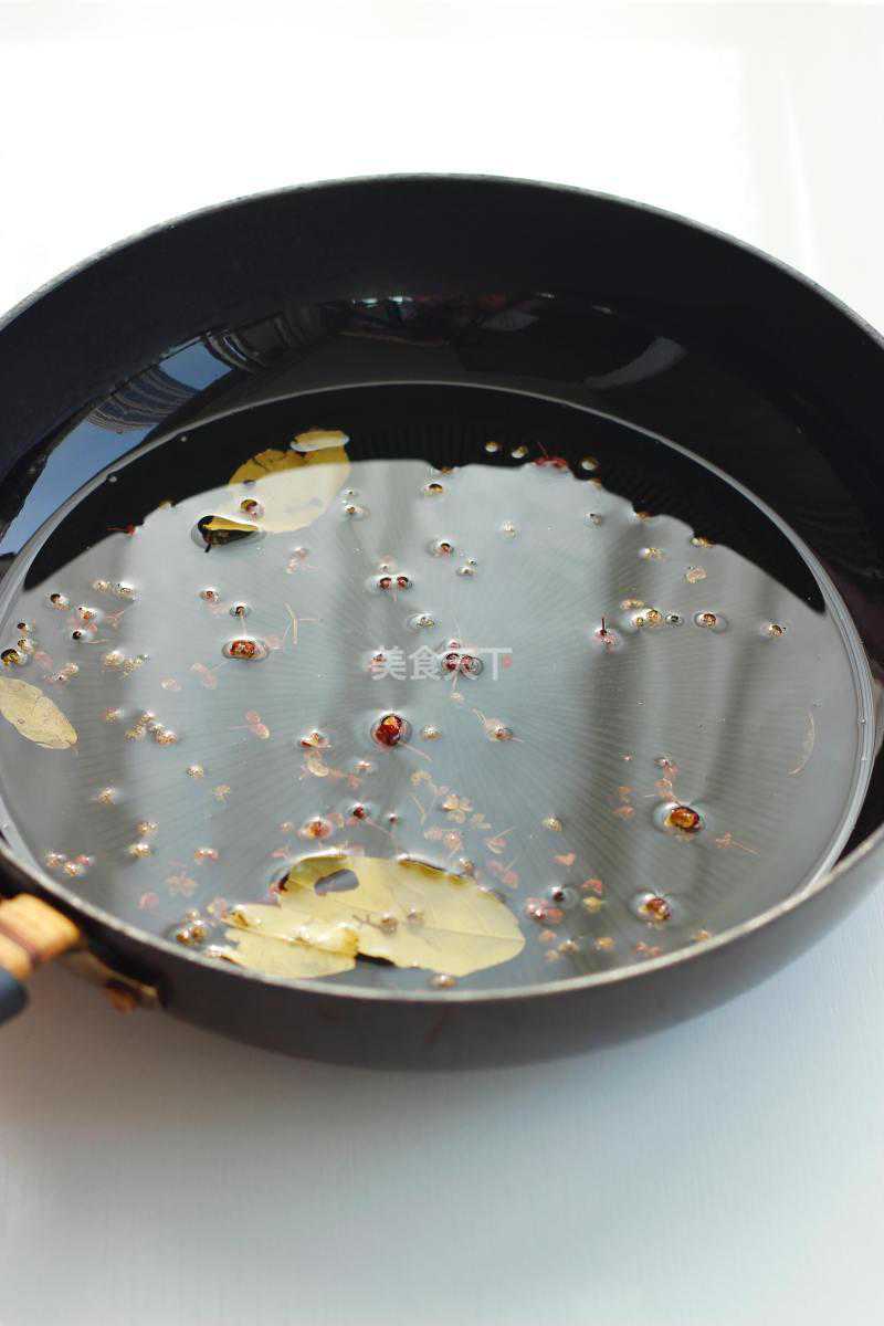 1.食用油适量倒入锅中,放入香叶、麻椒、花椒适量,最小火加热8-10分钟彻底出香味。