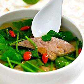 枸杞猪肝肉片汤这道菜味道偏咸,主要是由枸杞,猪肝,瘦肉,姜蓉,搭配适量的油,盐,生抽,生粉,鸡精,料酒煮成的,制作过程较为简单,食用这道菜不仅能补充人体所需的蛋白质和维生素,还能滋补肝肾,具有清热解毒的功效。