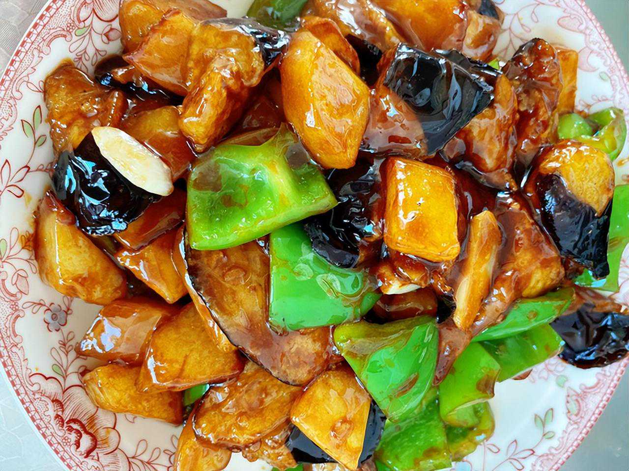 6、收汁完成即可出锅,这道色香味全的地三鲜就制作完成了,颜色闪亮,味道好吃,酸甜美味,鲜香可口,来一碗白米饭,舀入菜汁,孩子都大口吃,毫无压力。