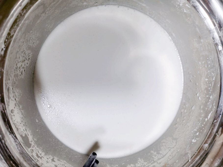 2、准备一盆清水,放入适量的土豆淀粉,搅拌均匀,浸泡2个小时,等淀粉水完全沉淀以后,再把上面的清水倒干净,只保留底部的稠糊,用这个给肉片挂糊。