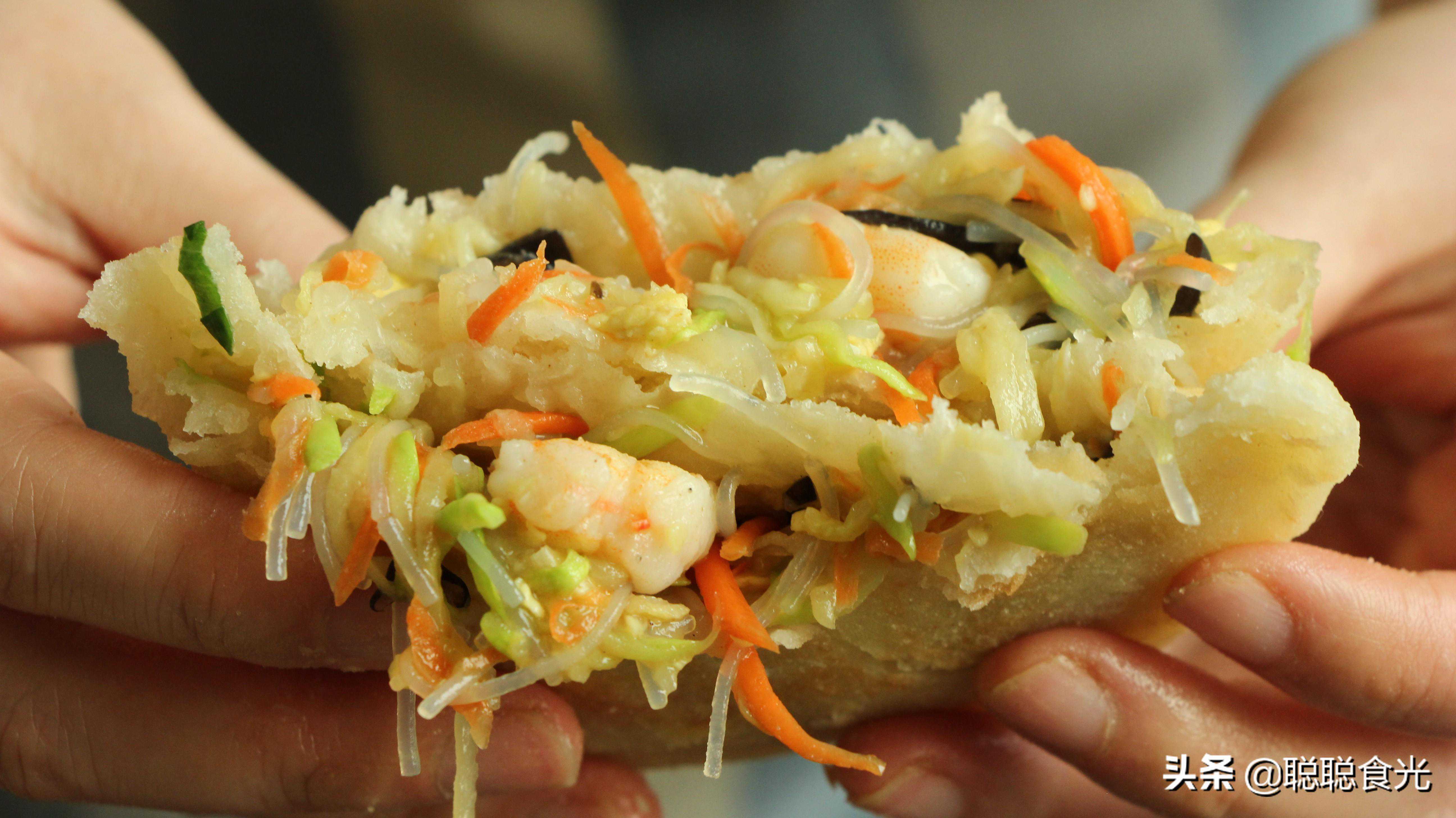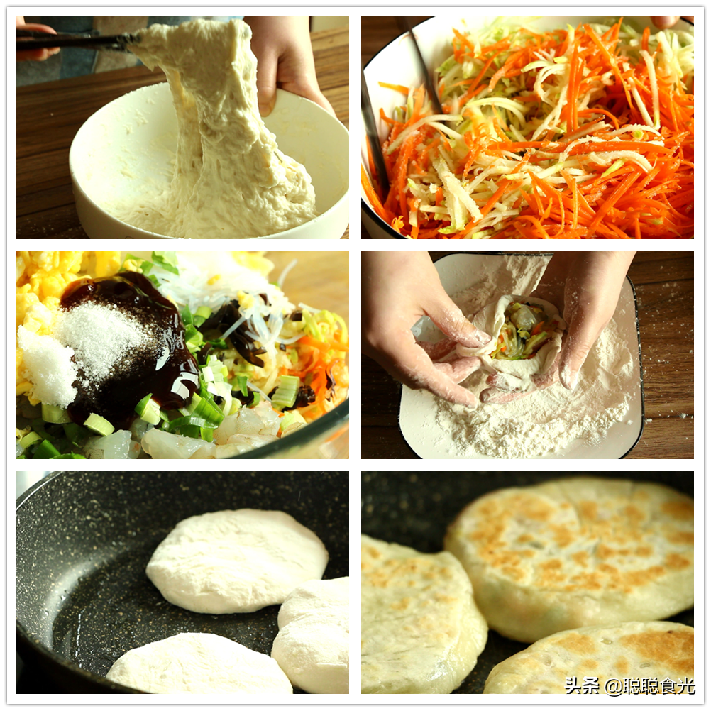 【食材】面粉、水、粉丝、西葫芦、胡萝卜、木耳、虾仁、葱、鸡蛋、盐、蚝油、糖、花椒粉、五香粉、香油