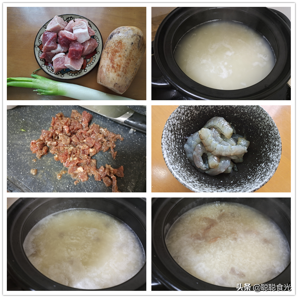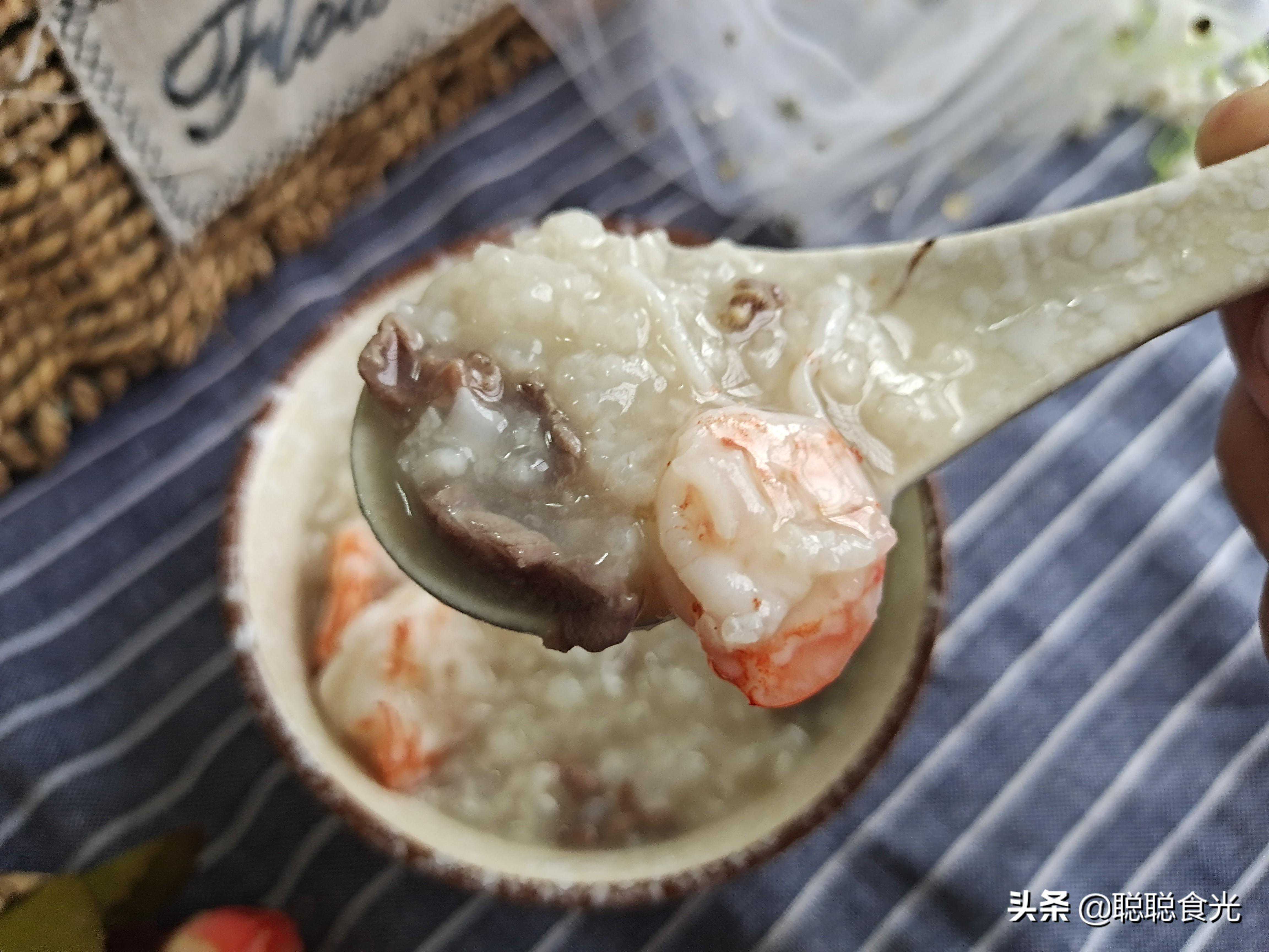 【食材】大米150克、牛里脊一小块、大虾6只、盐适量、胡椒粉适量