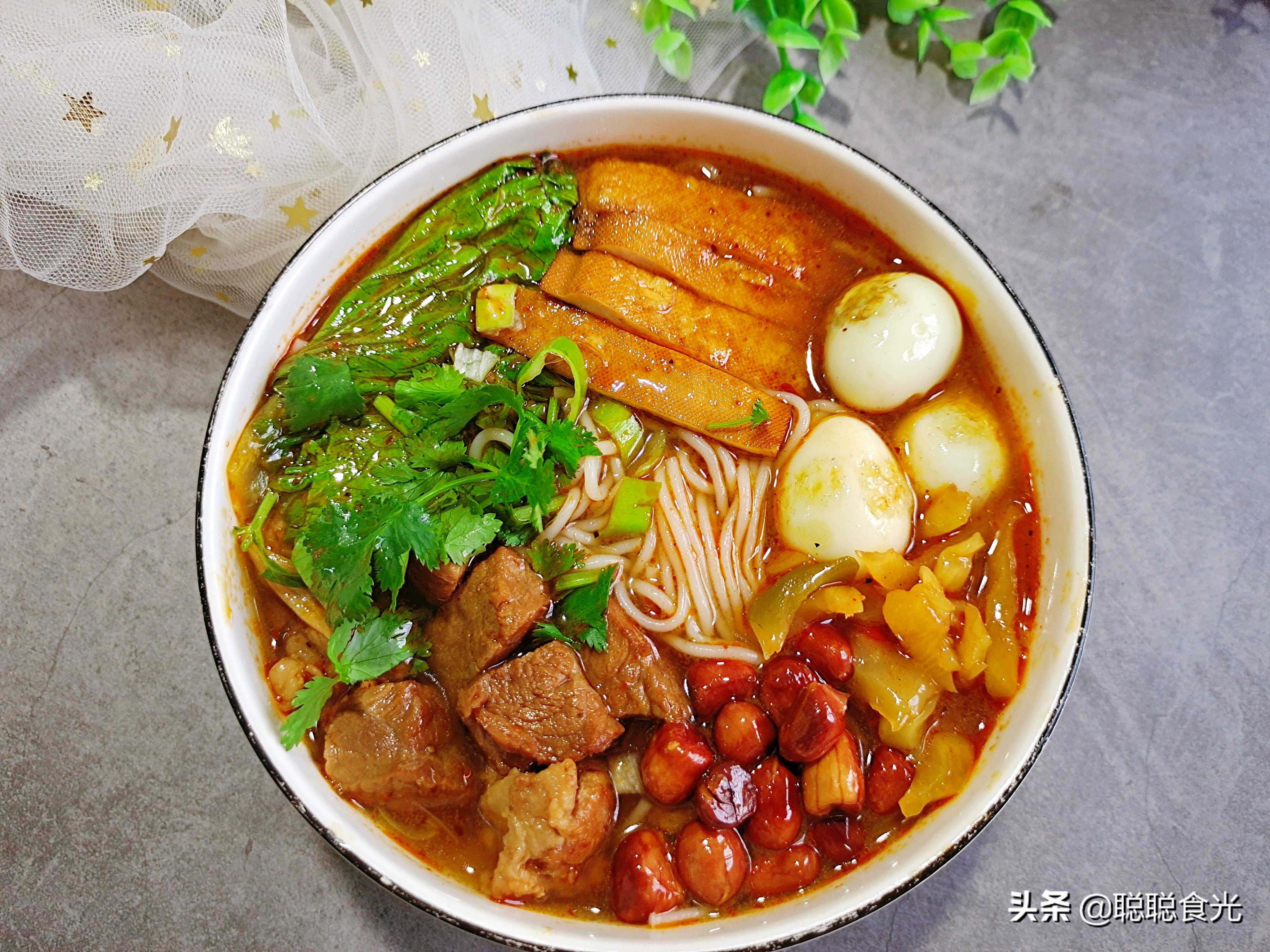 【食材】牛肉1斤,米粉1斤,豆干,鹌鹑蛋,花生,油菜,葱,蒜,料酒2勺,生抽2勺,老抽1勺,盐1勺,白糖或冰糖1勺,五香粉适量,黑胡椒粉适量。