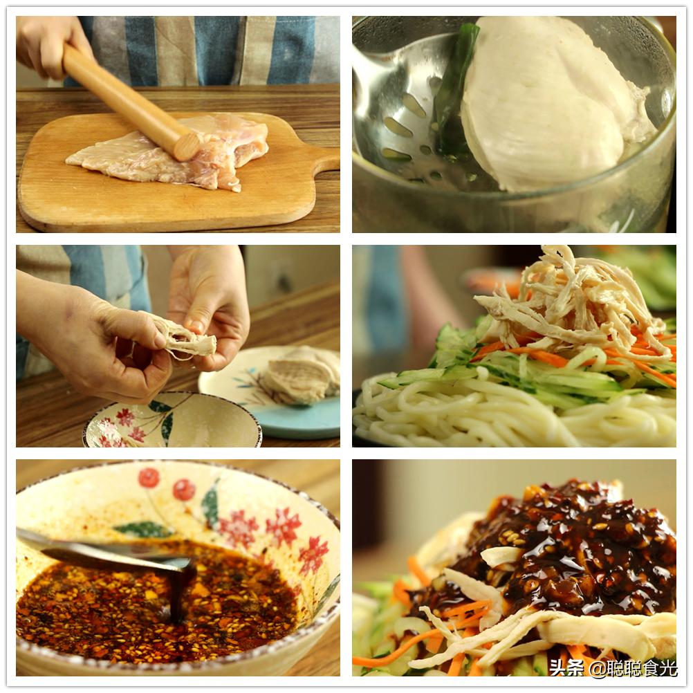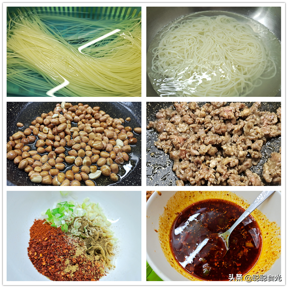 【食材】面条、鸡柳、鸡蛋、熟花生、蒜末、辣椒粉、花椒粉、盐、生抽、陈醋、葱、香菜