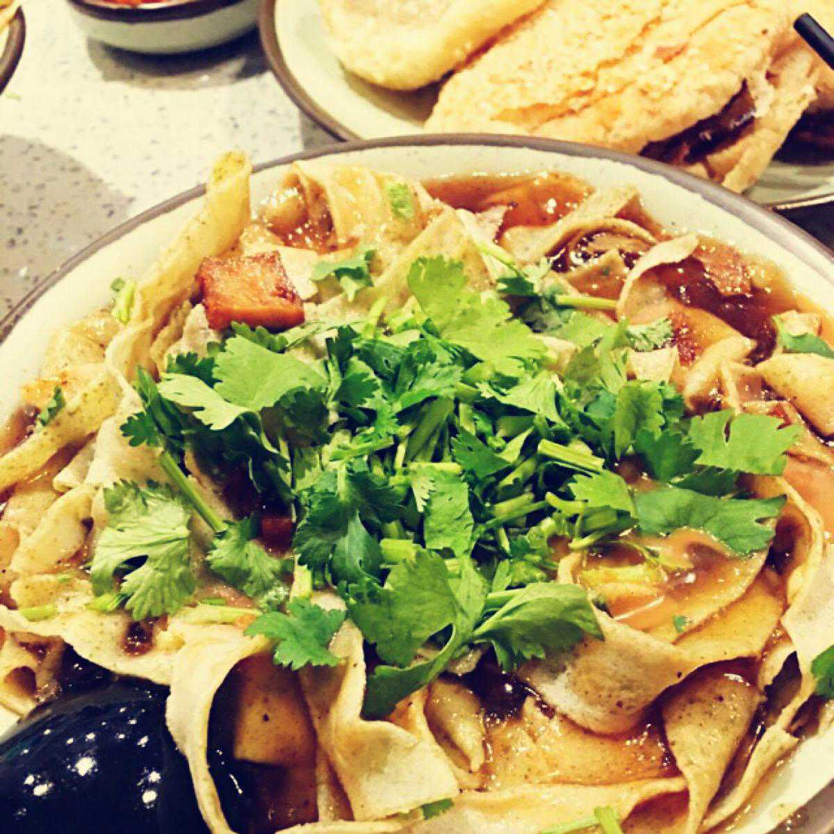 (牛肉烧饼茶鸡蛋是锅巴菜的绝配)