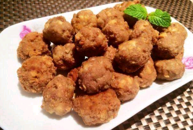 自制芥菜小圆:猪里脊肉、猪肥膘肉分别剁碎后按照3:1的比例混合.取混合好的肉碎1千克加入剁碎的小芥菜300克、鸡蛋1个拌匀,