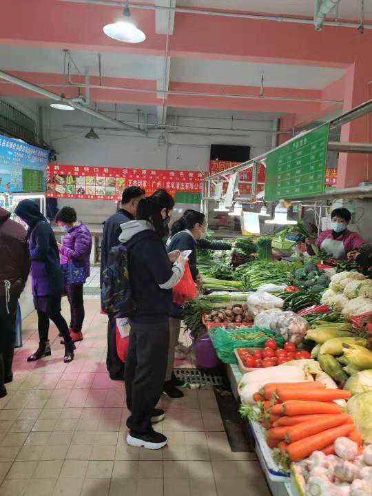 白云区石井张村肉菜市场:市场管理正规,要求所有摊档明码标价,现场有工作人员监督标价,菜市场仅开放一个入口,有专人负责体温检测。肉菜供应充足,秩序良好,猪肉价格有回落,蔬菜价格适中(大白菜3元/斤,白萝卜2.5元/斤,猪瘦肉50元/斤,猪上肉40元/斤)。
