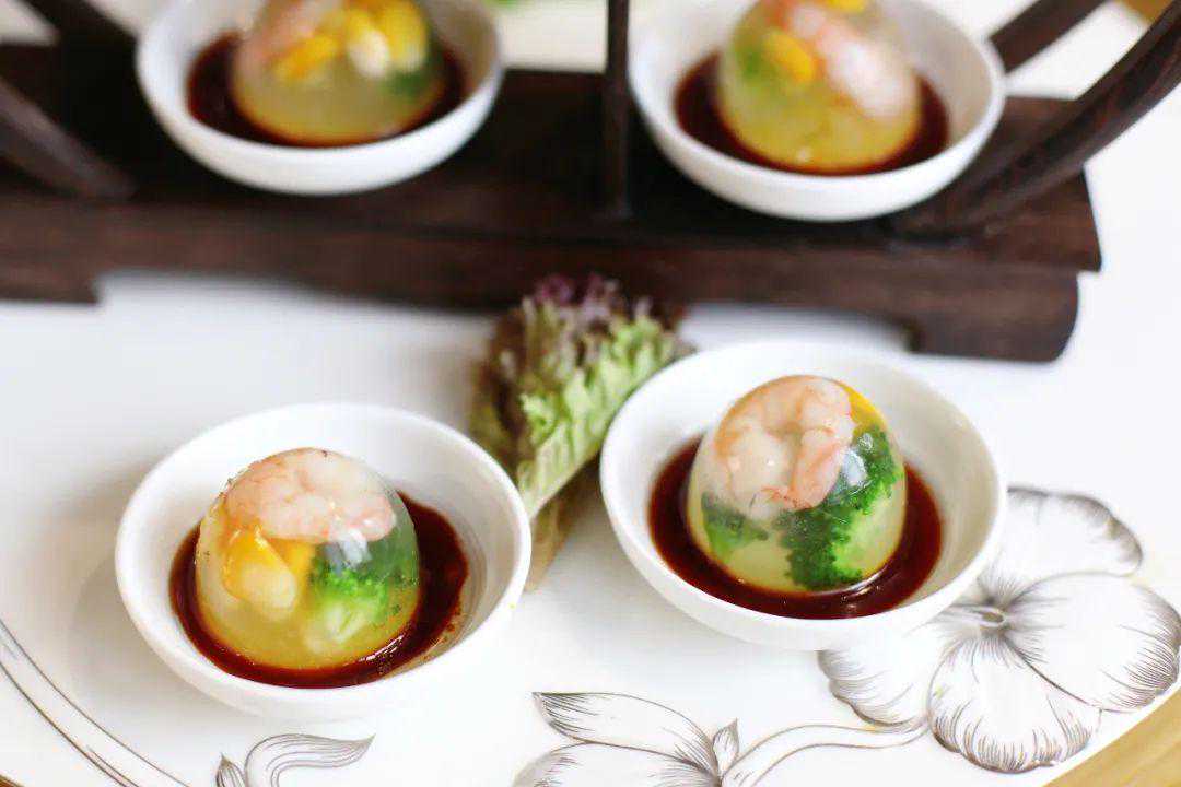看一下细节,里面的虾仁玉米晶莹剔透,色彩十分可人。