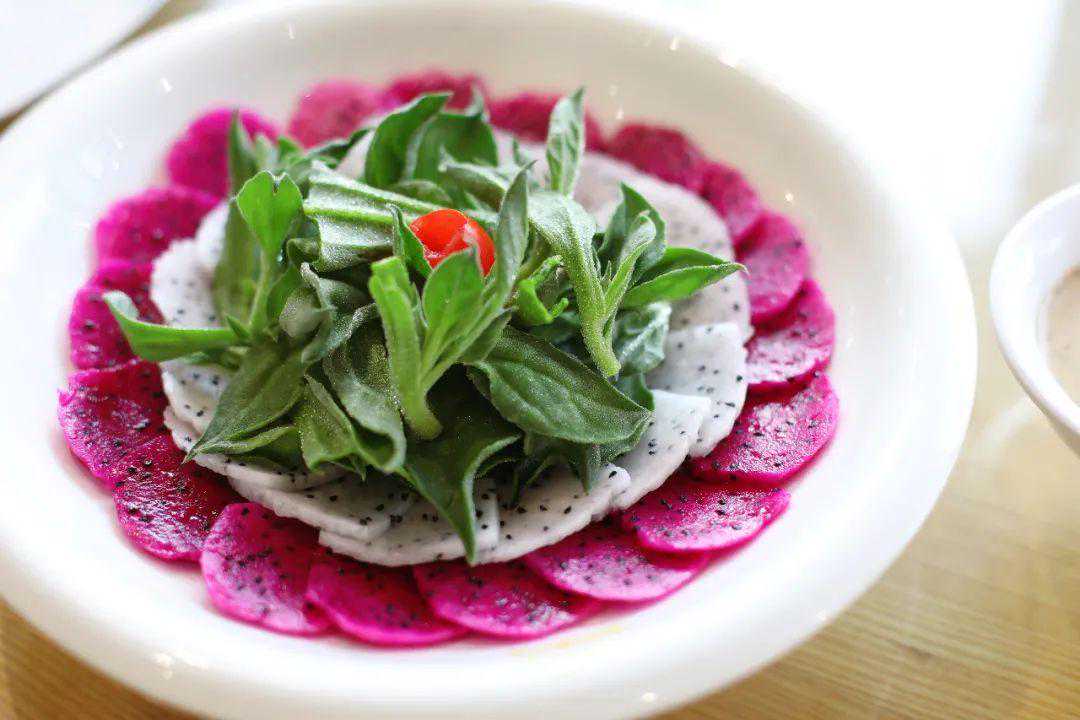 红白两色的火龙果,加上冰草的翠绿,养眼又清清爽爽。