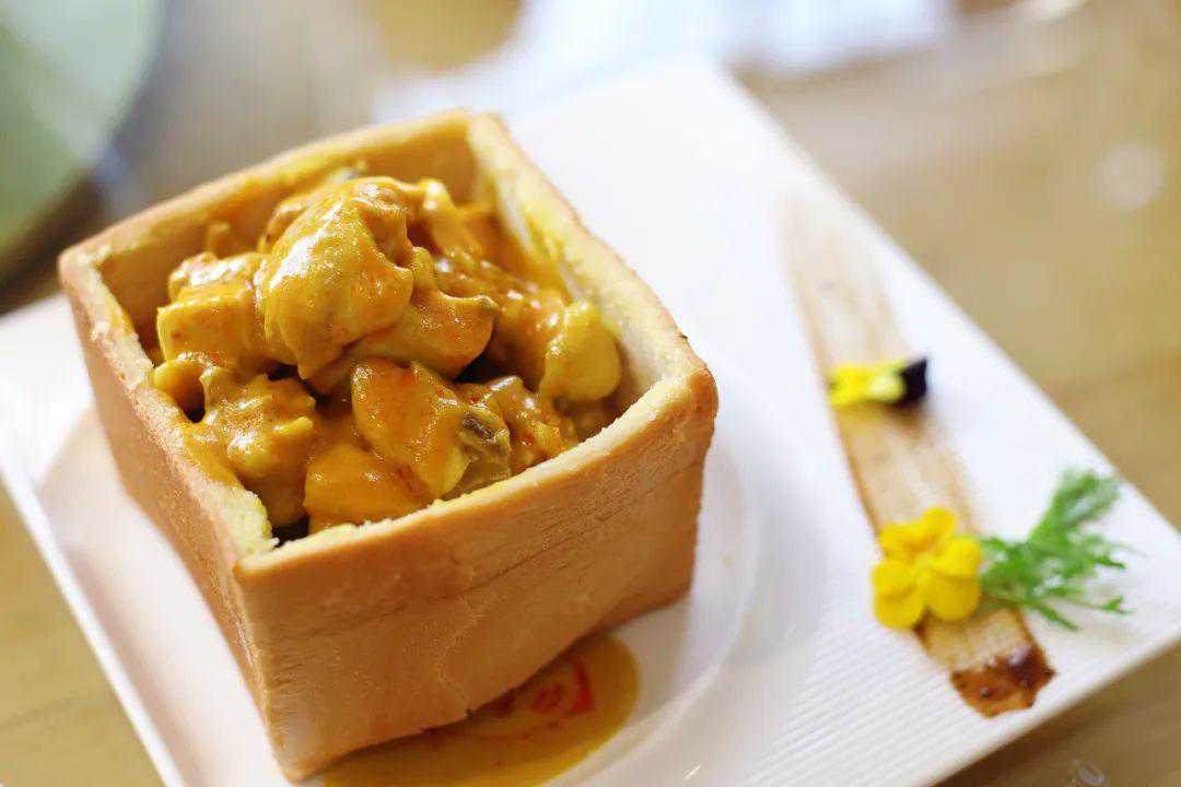 面包咖喱鸡。一口一块鲜嫩的鸡肉,超爱吃咖喱味。