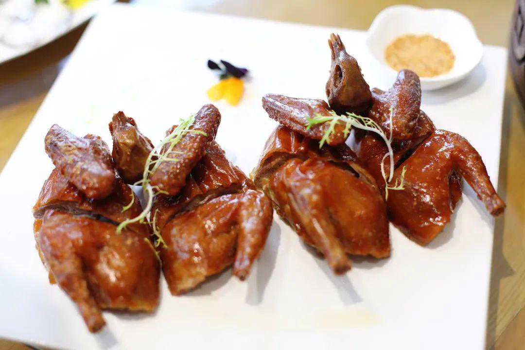 鲍汁脆皮玻璃乳鸽,端上来油光透亮,真有了玻璃的晶莹质感。乳鸽皮非常的脆,火候到位。