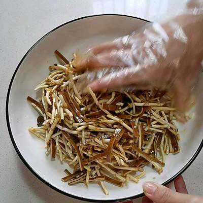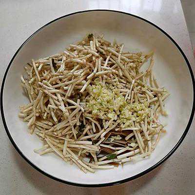 7、折耳根豆腐皮切段加入蒜末