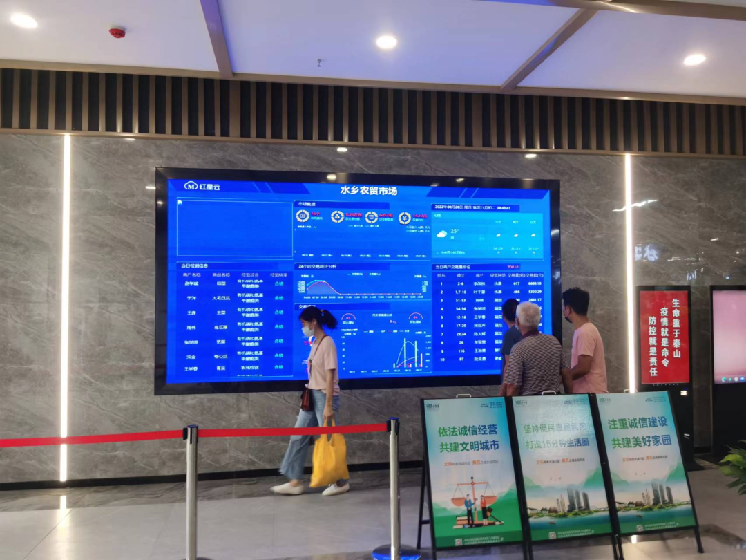 据了解,市集引入全套智慧农贸市场管理系统,实现市场的全智能可视化,同时实现智慧停车、智能水电、智慧消防。