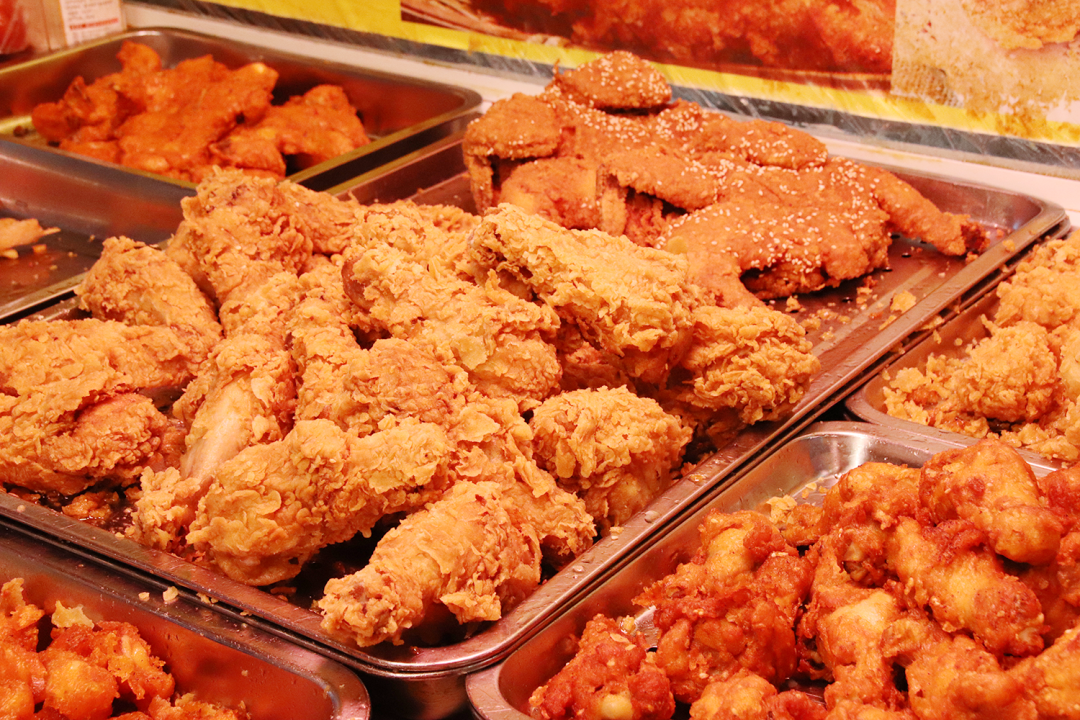 不起眼的老北京炸鸡腿开在老新村,环境朴实无华,却时刻都在排队。三口锅同时运作,热油翻涌沸腾,迎来送往一茬又一茬的新老客。吃惯的老食客都是几袋子一买。