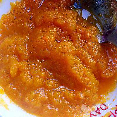 1、南瓜去皮切块蒸熟,用勺子捣成泥