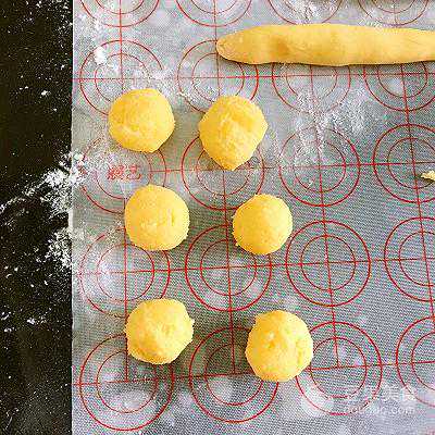 12、将奶黄馅搓圆,分成11克左右的圆子