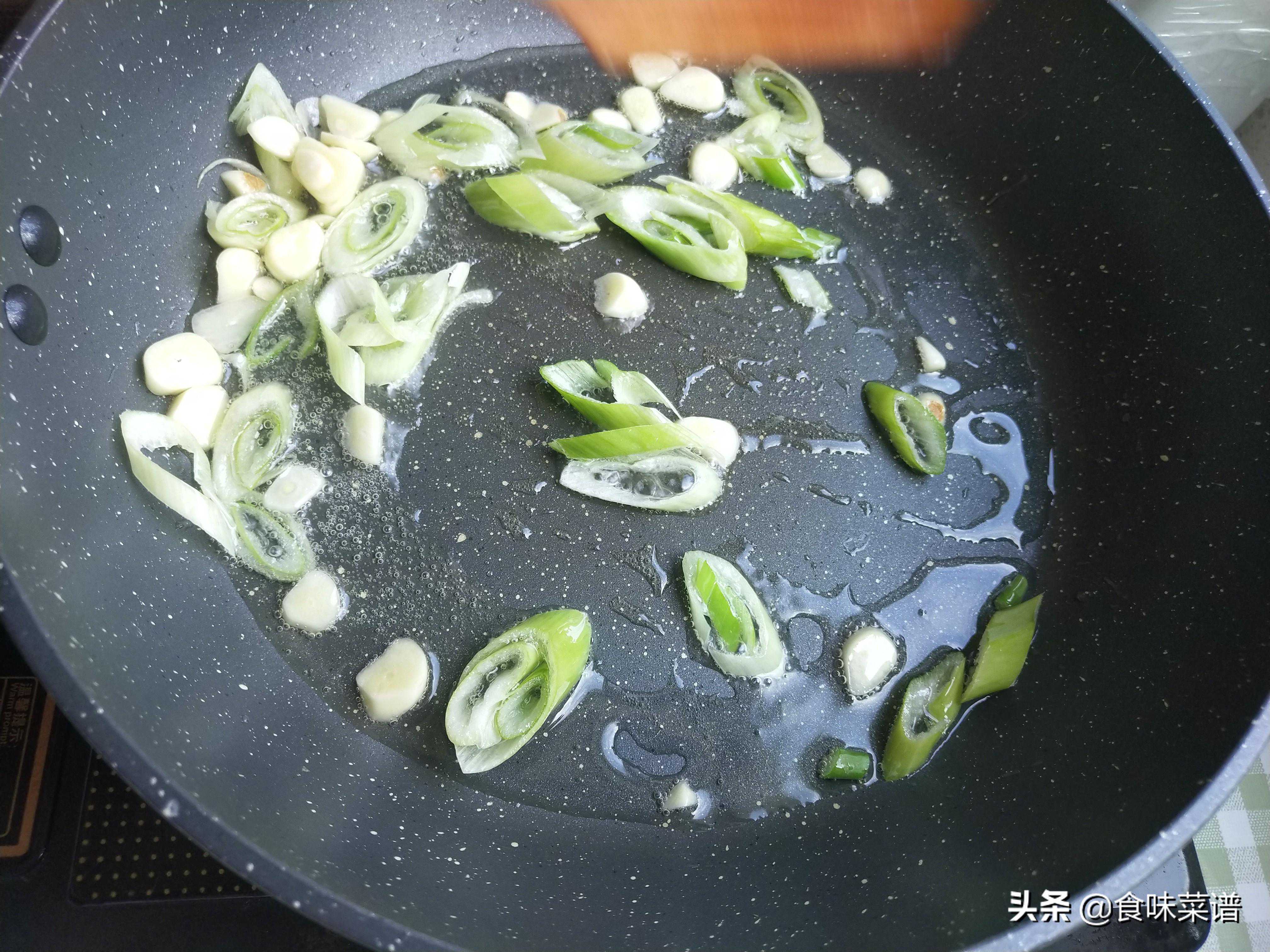 4、锅内加入少量油,放入葱蒜炒出香味。