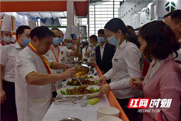 签约成功后,许大师亲自给在场的观众示范使用汇湘轩红油辣椒制作油辣白鸡。这款红油辣椒经许大师反复调试,制成的几大盘试味的口水鸡在现场一扫而光。在观众的强烈要求下,汇湘轩的多名餐调工程师也在许大师指导下用其他酱料制作菜肴,获得了品尝者的一致好评,成为展会的人气展位。
