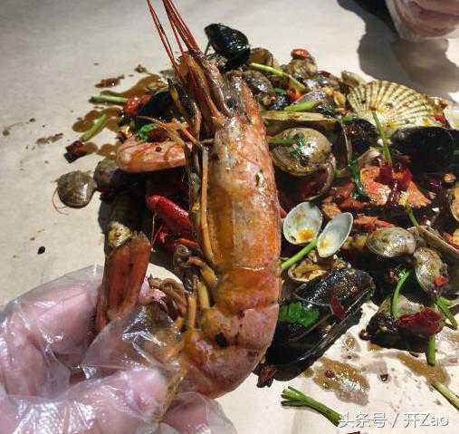 一大桌子牛皮纸承担的海鲜足够让你辣到爽、麻到劲,