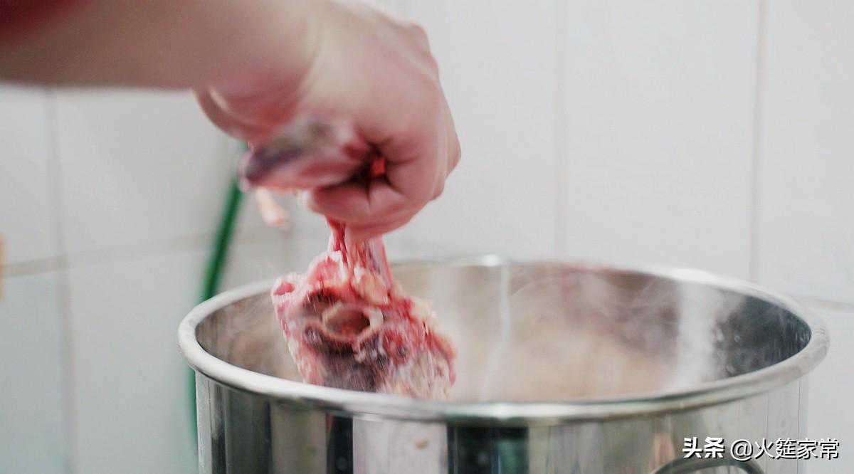 1剁牛骨,再下锅炖汤,注意去除浮沫