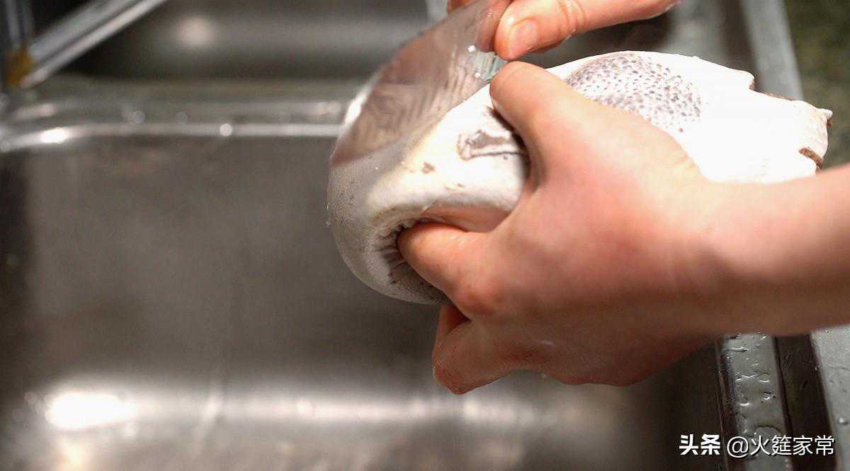 10烧开水,将牛心牛舌牛肚牛头皮下锅焯水,刮去牛舌苔