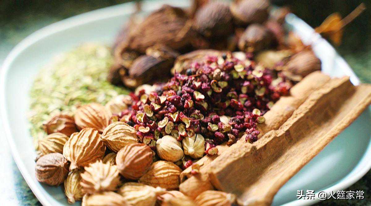 2准备香料包(分为A料包和B料包),A料包有砂仁、白蔻、桂皮、八角、草果、花椒、小茴香(将草果拍破,花椒称重),B料包有香叶、灵草