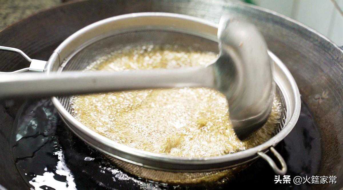 8菜籽油温降到150℃时第二次淋油,油温100℃以下第三次淋油
