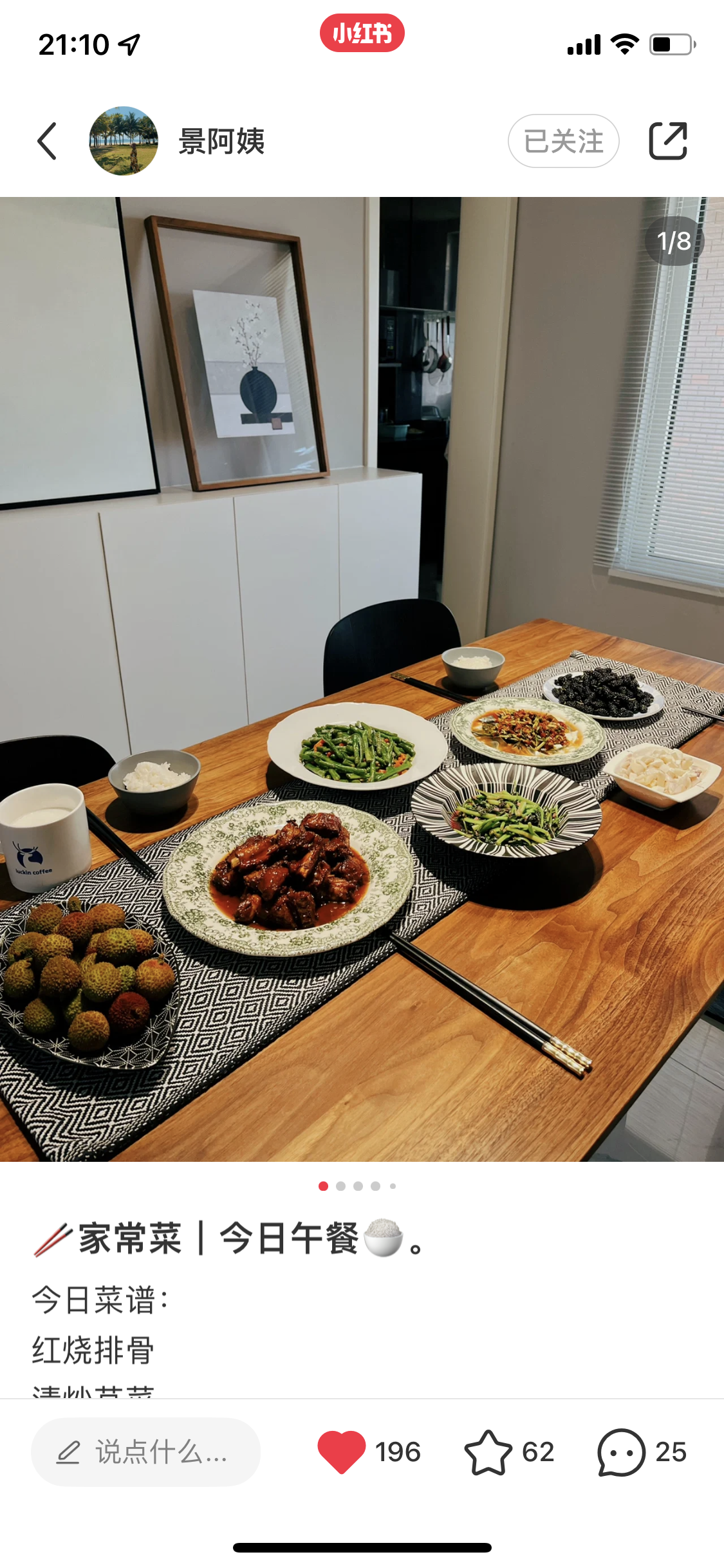 景阿姨是一位来自内蒙的退休化验员,从小就练就了一番厨艺,退休后闲余时间多了起来,孩子们经常把她做的饭菜晒到朋友圈,得到了大家的惊叹和好评,于是在家人的鼓励下她注册了自己的小红书账号,起初的目的很简单就是为了记录一下自己每天为家人们准备的饭菜。