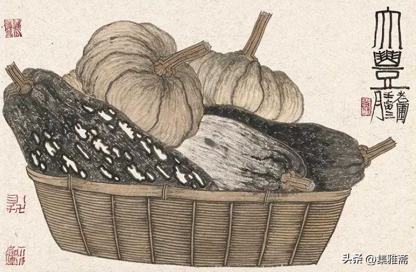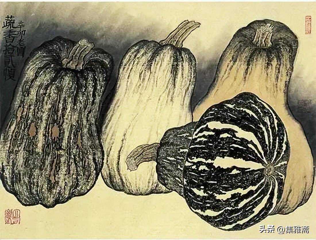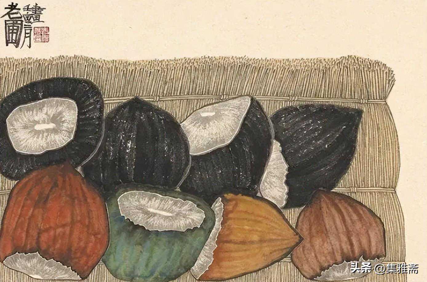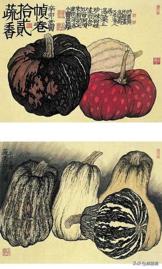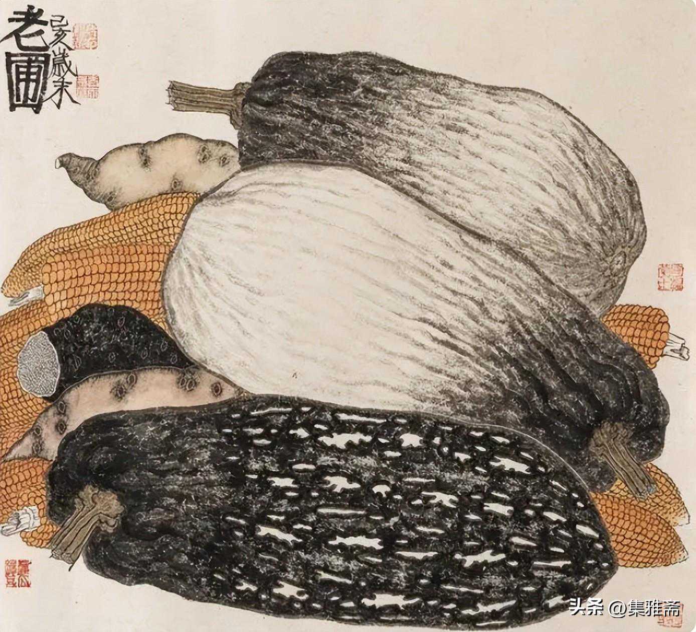 荆浩在《笔法记》中强调作画要“图真”。曾言“似者,得其形,遗其气”,“真者,气质俱盛”。而老圃所提倡的对生活写真,是在本质上做到了“传神”和“得其气韵”。他借助具象的写实语言来表现抽象的情感流露,用一筐筐充满生活温情与朴质馨香的瓜果菜蔬,抒写着最真实的田园物产,也借此反映了他对乡居生活的热爱和回望。