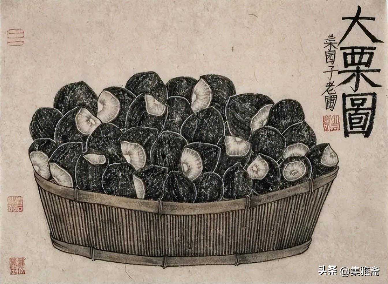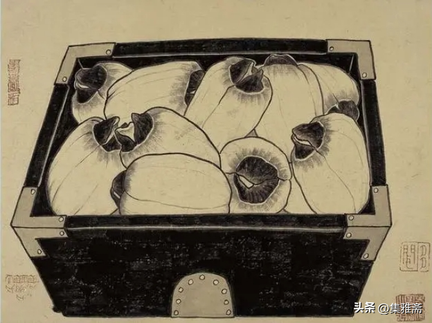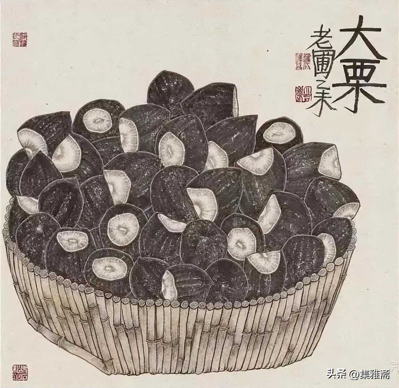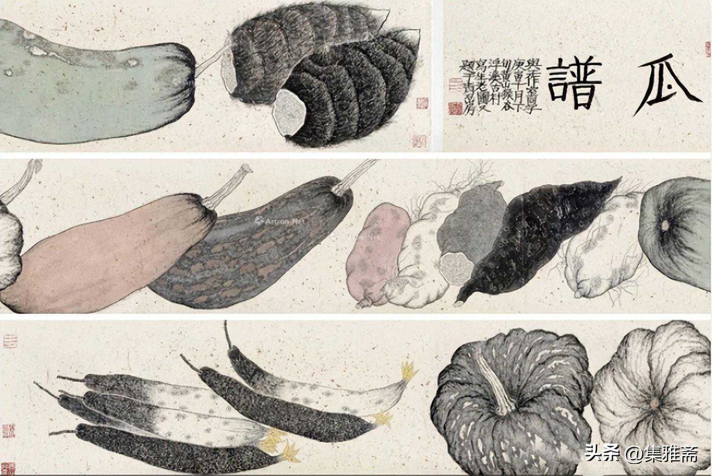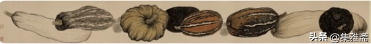 荆浩在《笔法记》中强调作画要“图真”。曾言“似者,得其形,遗其气”,“真者,气质俱盛”。而老圃所提倡的对生活写真,是在本质上做到了“传神”和“得其气韵”。他借助具象的写实语言来表现抽象的情感流露,用一筐筐充满生活温情与朴质馨香的瓜果菜蔬,抒写着最真实的田园物产,也借此反映了他对乡居生活的热爱和回望。