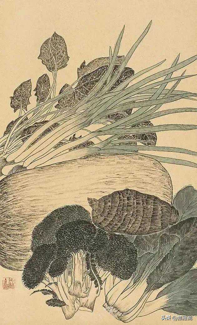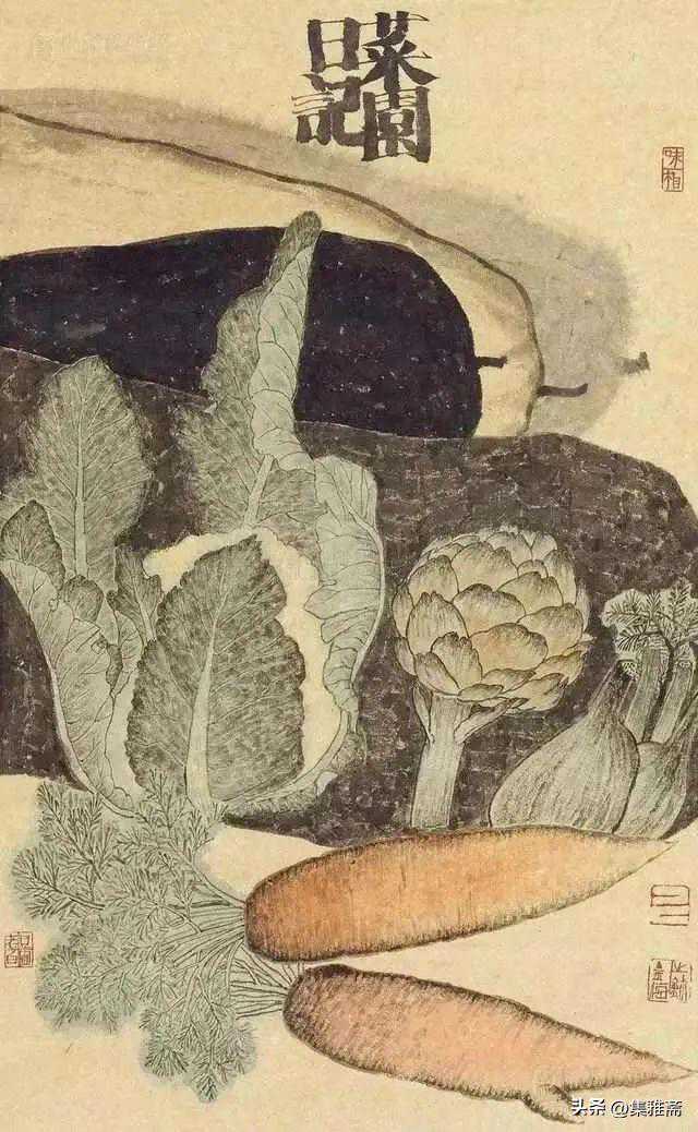 画蔬果农具、喝清茶、吃素菜、种花草,老圃从平凡中契悟大道,他认为艺术创作与佛家修行一般,他以一种近似“禅定”的状态,心无杂念的描绘物象,营造入圃得真味,安禅养素心的境界。