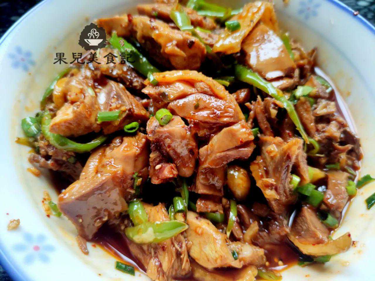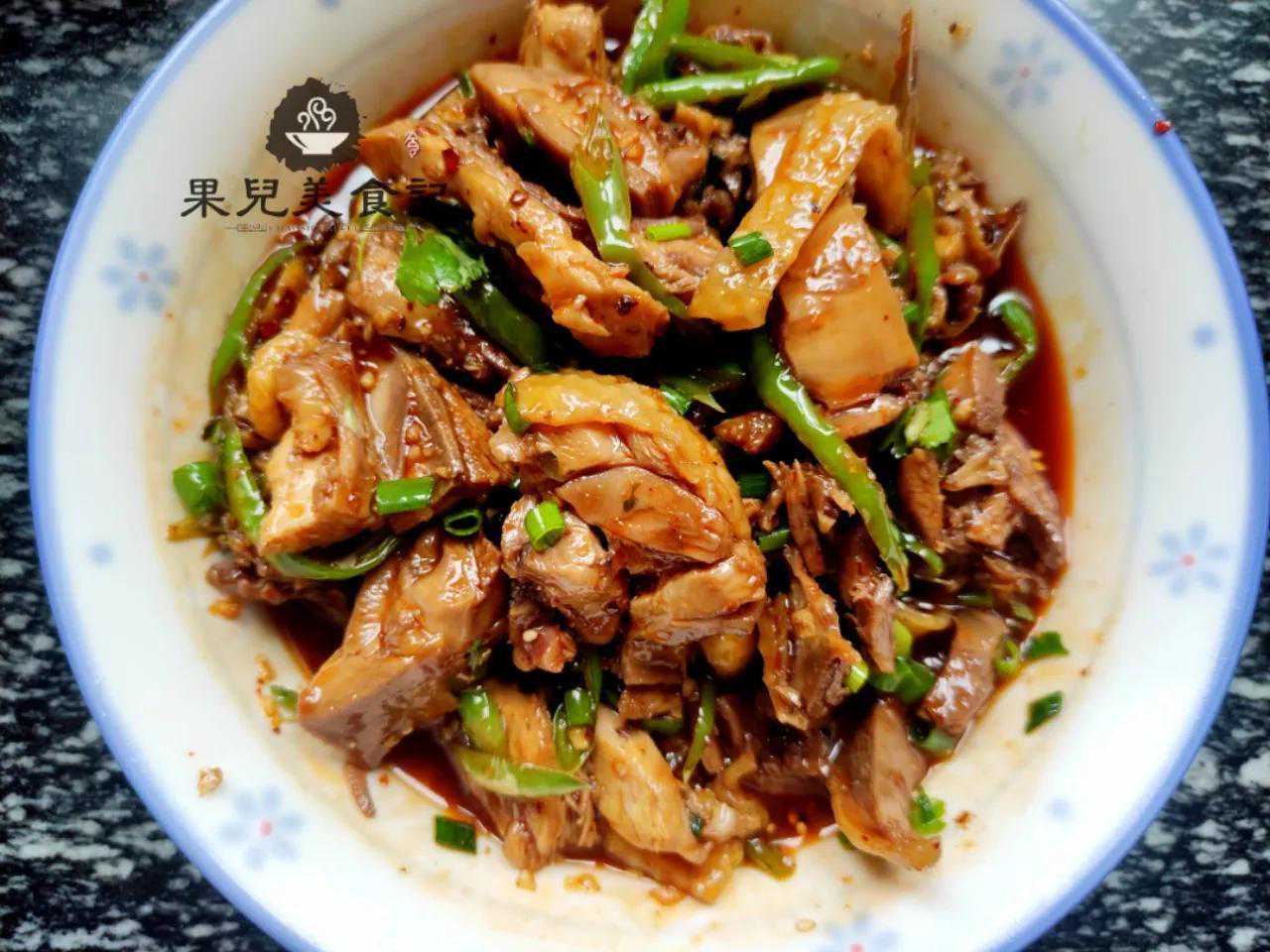 【食材】:鸡肉、青辣椒、姜、蒜、生抽、麻油、红油辣椒、白糖、醋、盐;