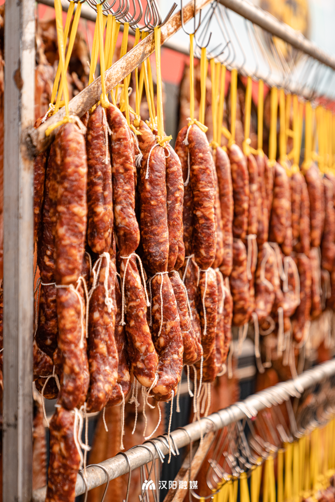 香肠肥瘦相间,恰到好处。别看被肠衣包裹的香肠和烟熏过的腊肉外表很普通,但却是汉阳人心里最亲切的年味。